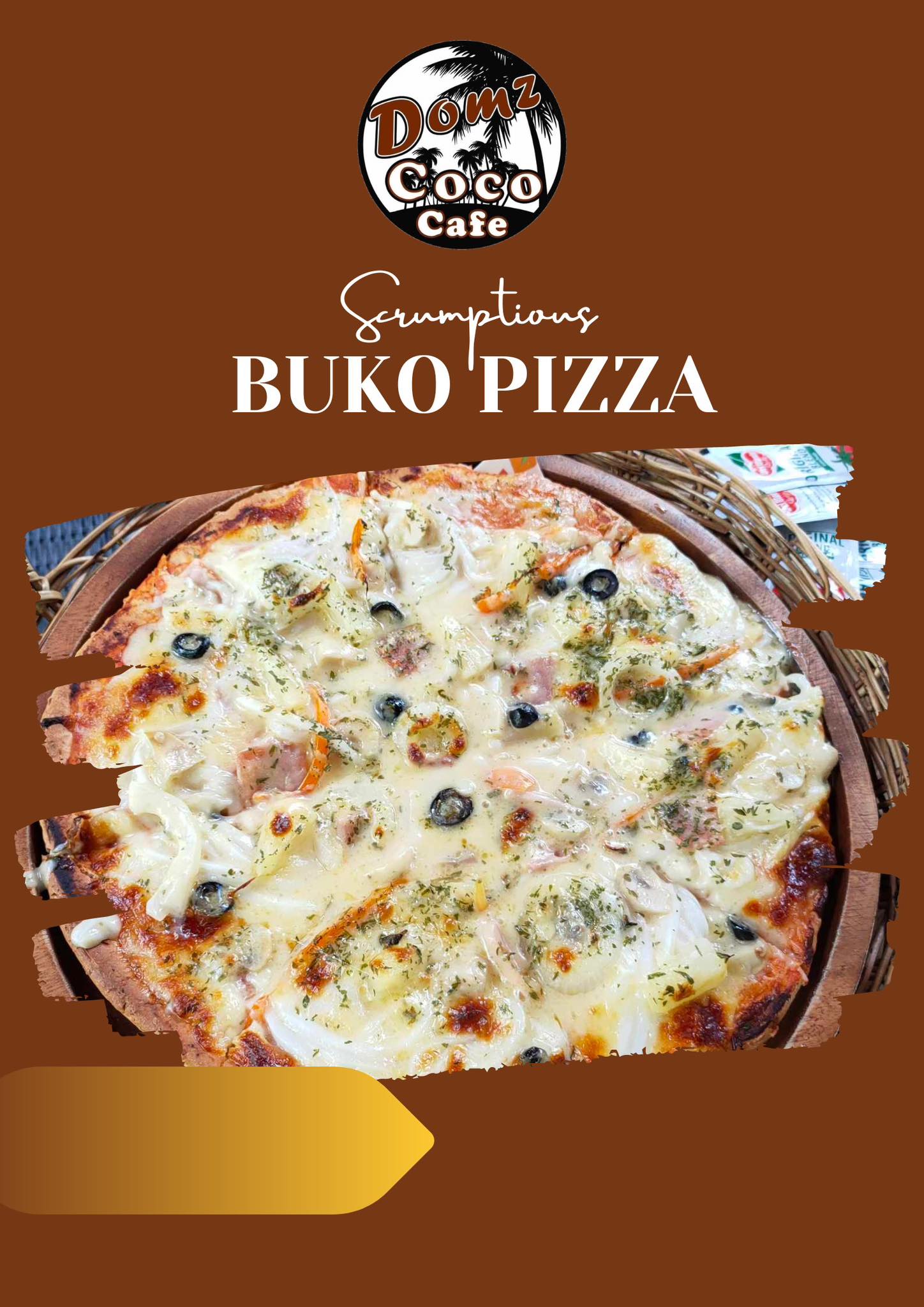 Experience a tropical twist with our 12 inches Buko Pizza. Our handcrafted pizza features a luscious blend of coconut-infused sauce, topped with tender buko (young coconut) strips, vibrant vegetables, and a medley of premium cheeses. The innovative creation offers a harmonious fusion and savory of sweet, bringing a taste of paradise to every slice. Embrace the exotic with our Buko Pizza, where traditional pizza meets the refreshing flavors of the tropics.